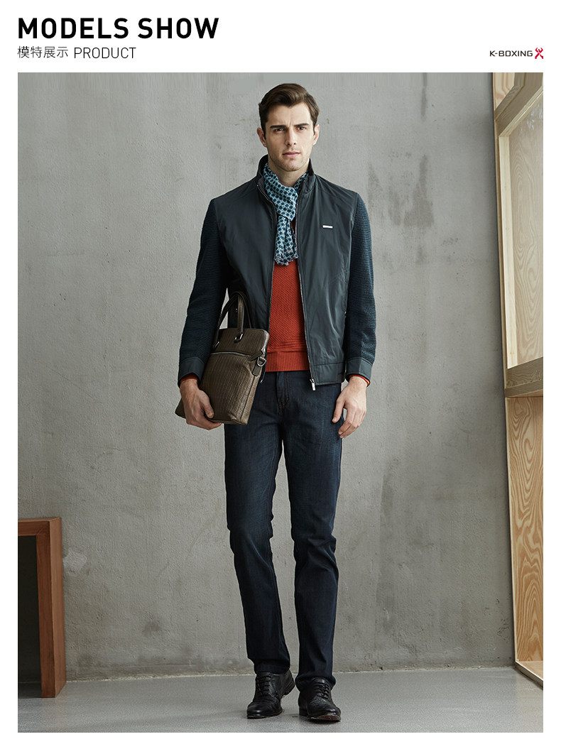 【劲霸上新】劲霸 男士商务秋装外套 立领爸爸装 中年轻薄休闲拼接夹克正品